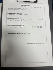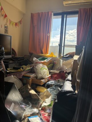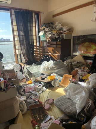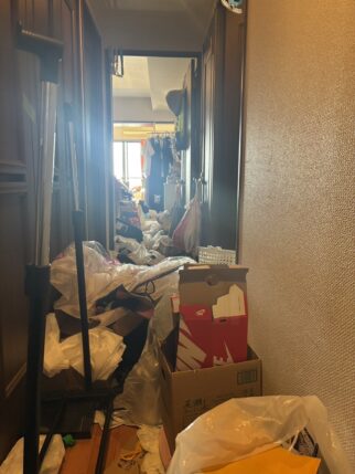 当日は3DKのお部屋を2トントラックショート、2トントラックロングそれぞれ1台ずつ、作業員8名、作業時間6時間にてお部屋をお片付けいたしました。今回は玄関からお荷物がとても多い状態だったので、まず廊下の動線作りをしてから各部屋の仕分けに取り掛かりました。スタッフ一同協力して2日かかる作業を1日で終わらせる事ができ、お客様からも「評価が高く安心出来そうだったので依頼をしましたが、それ以上に丁寧で速い作業でとても助かりました。」と嬉しいお言葉をいただくことができました。