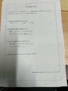 作業後には『見積もりや作業全てが凄く大変良かったです。』とお褒めのお言葉を頂きました。