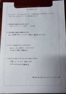 作業後には『丁寧な対応料金の安さ全てにおいて大変良かった。』とお褒めのお言葉を頂きました。