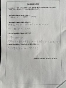 見積りでの値段の対応もよかったです。(値引きしていただきました。) - Qお気付きの点がございましたらご記入下さい。