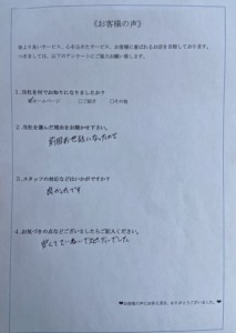 1日で作業を完了させる事が可能ですので、お急ぎのお客様にもご