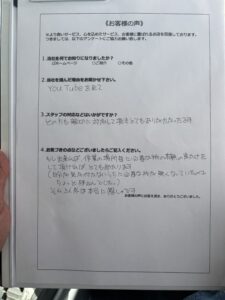 作業完了後には、『どの方も親切に対応していただきとてもありがたかったです。』と大変喜んでいただけました。