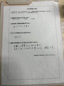 お客様からは「非常に丁寧に対応してくれ、作業も迅速に進めてくれたので満足しています。」とお言葉をいただくことができました。