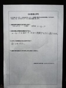 当日は1DKのお部屋を1トン車1台、作業員5名、4時間の作業にて、今回はアパート三階のエレベーターがなく暑い中の作業でしたが、お部屋ごとに分担をしっかり割り振り一人一人素早く作業を行うことができました。また、お客様ご指定の残すお荷物にしっかり目印として養生テープを貼らせて頂くなど、ミスがないよう工夫して進めさせて頂きました。