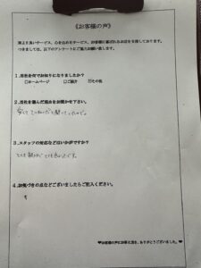 作業後には、『日程が限られていたにも関わらず安くて丁寧、親切にしてくださって有難うございます』と、とても嬉しいお言葉を頂けました。